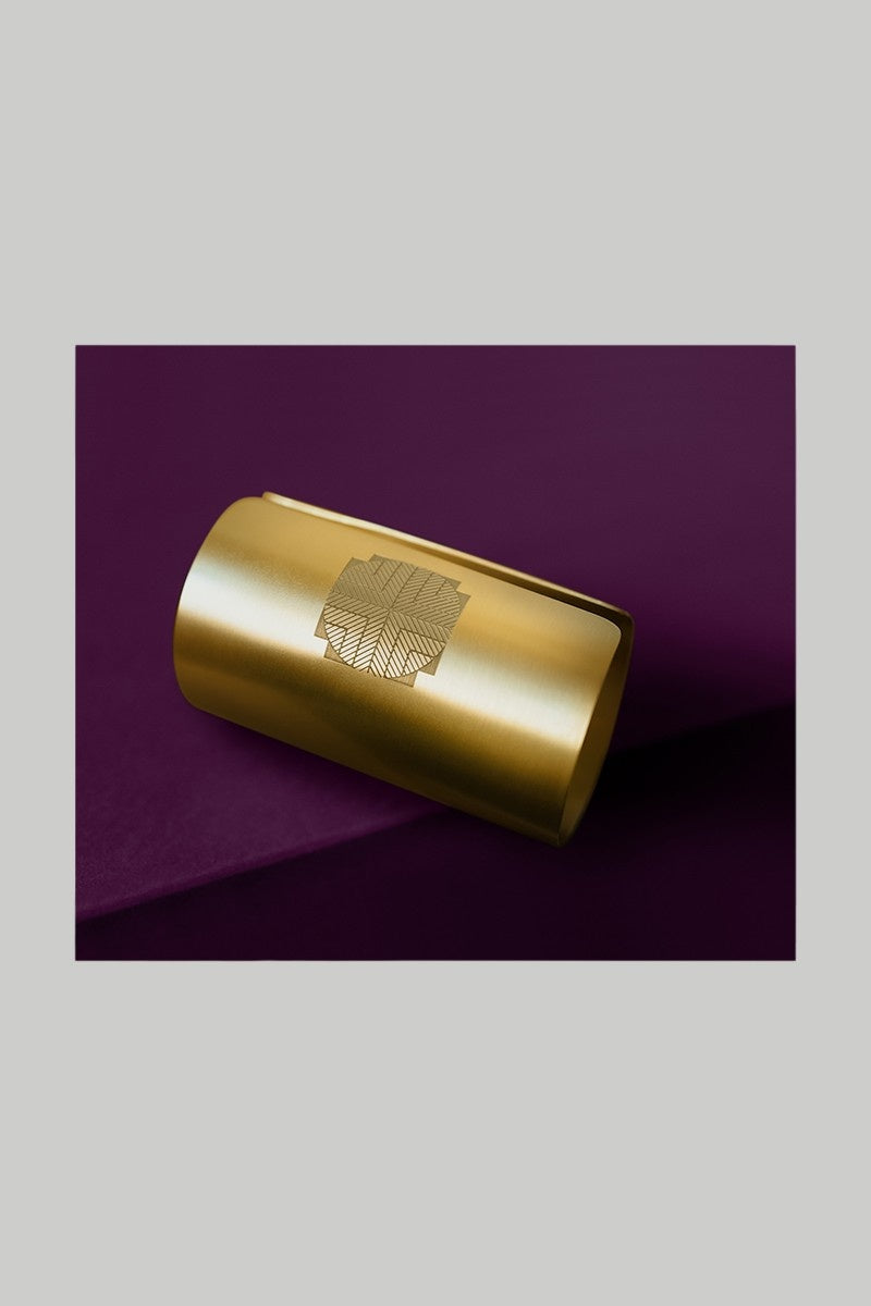 Our signature cuff features precise geometric shapes, laser-etched to add subtle visual interest. All our accessories are crafted in fine brass and finished by hand, so no two pieces are ever alike.