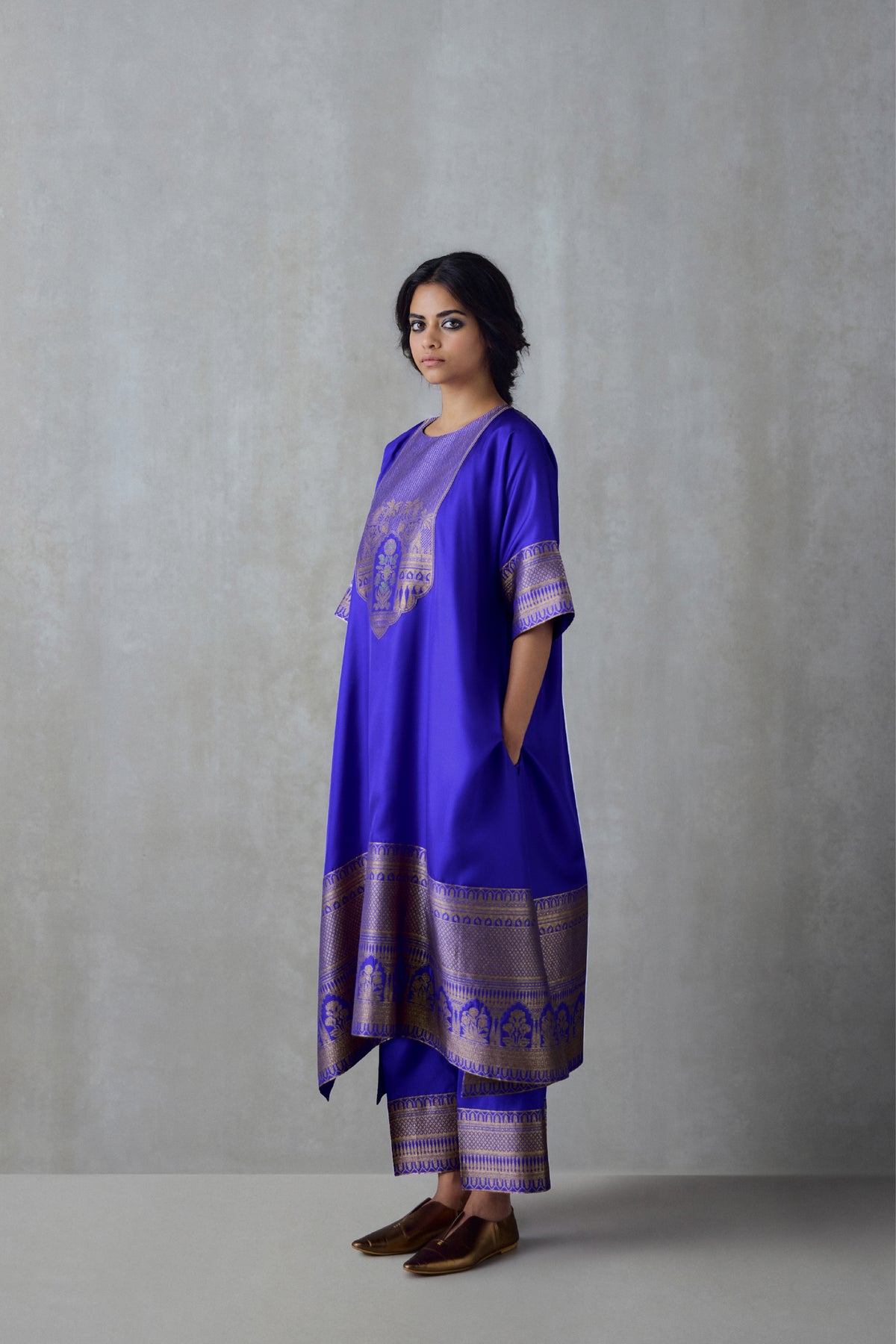 Designed for effortless dressing, this free-size tunic is crafted in lightweight silk, with engineered brocade details. It is finished with slits along the side seams for ease of movement.
