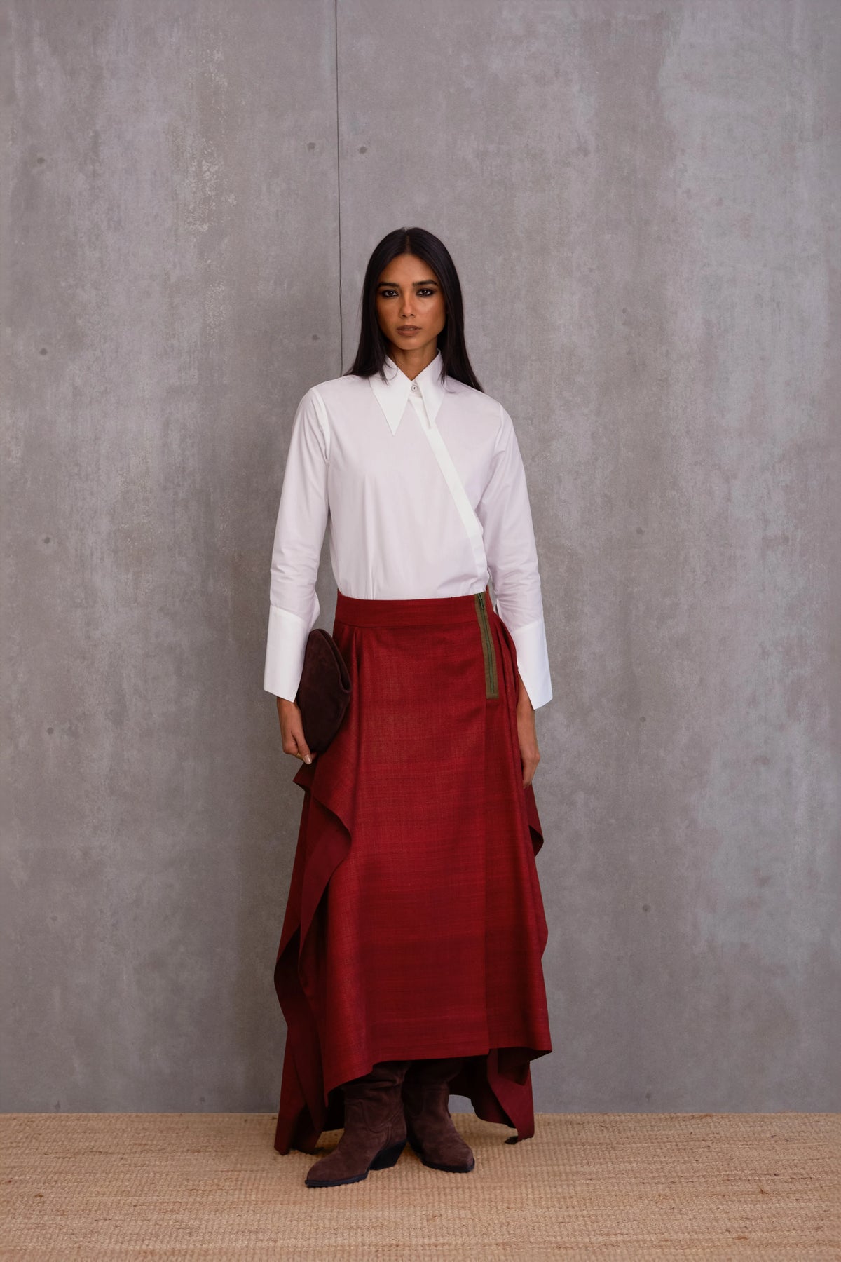 A wardrobe staple featuring a collared neckline and a diagonal placket that adds visual depth. Finished with our signature cuffs, it pairs effortlessly with our tailored trousers or can be styled with a pair of jeans.