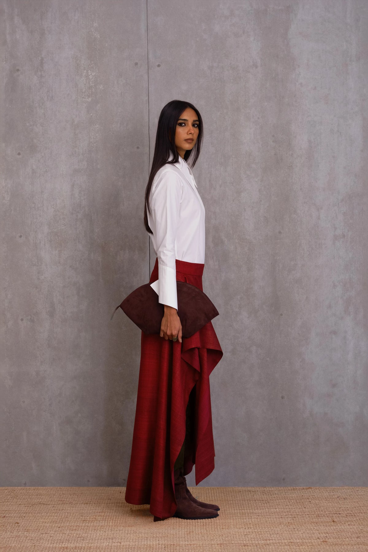 Sizing: The model is 5'10” (178 cms) and wears size S. The garment available for purchase is designed for height 5’4” (163 cms).