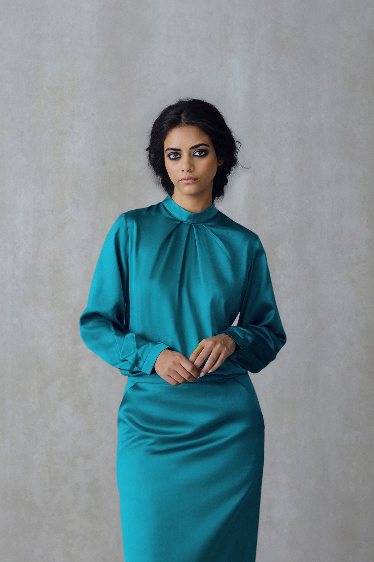 Sizing: The model is 5'8" (173 cms) and is wearing a small size blouse. The garment available for purchase is designed for a height of 5’4”.